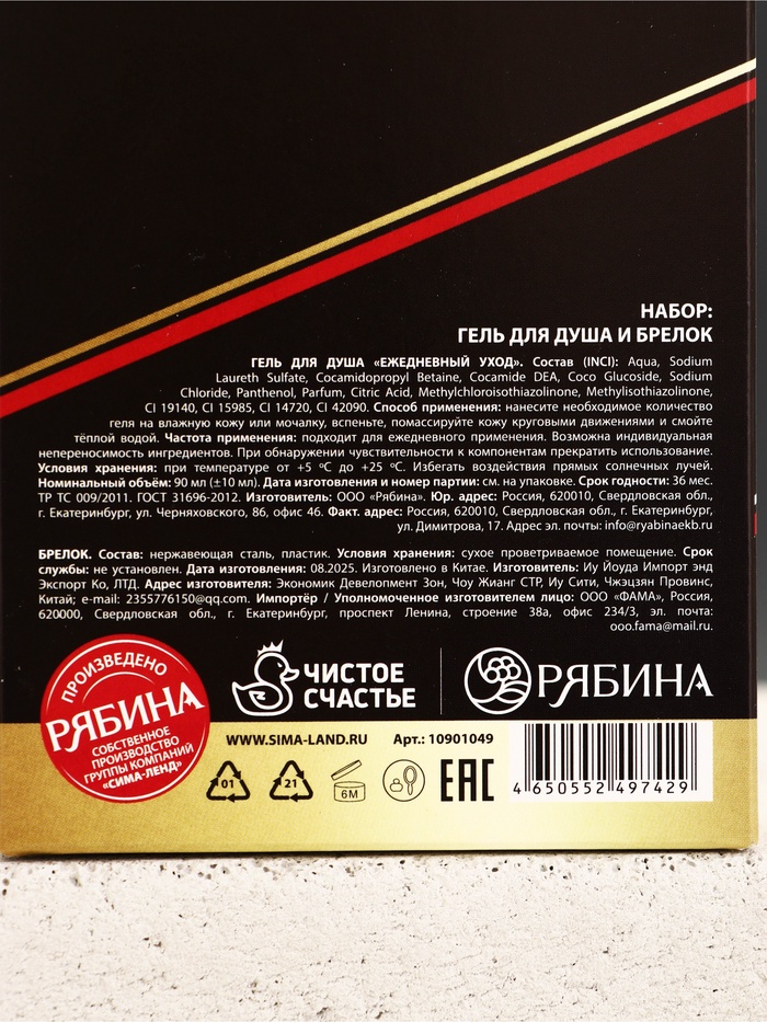 | Составляющие набора | Брелок; Гель для душа |