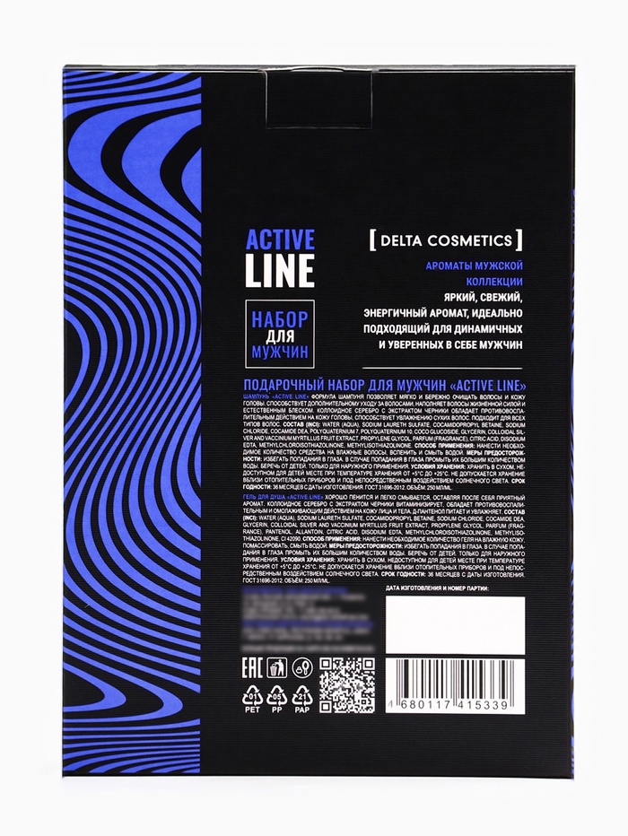 Технические характеристики Подарочный набор мужской AСTIVE LINE: гель для душа 250 мл + шампунь 250 мл