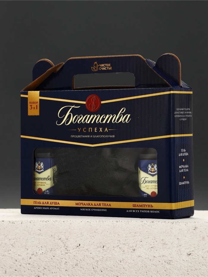 Подарочный набор мужской «Богатства», гель для душа, шампунь для волос, мочалка, Чистое счастье