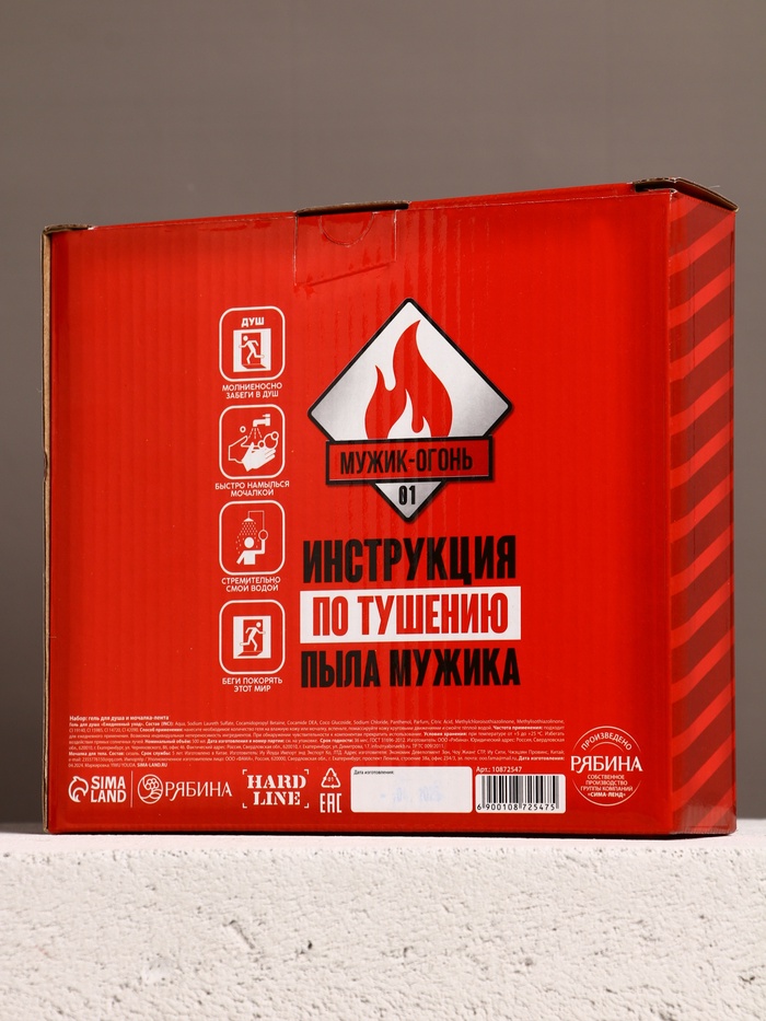 Технические характеристики Подарочный набор «Мужику огонь», гель для душа канистра 500 мл и мочалка лента, HARD LINE