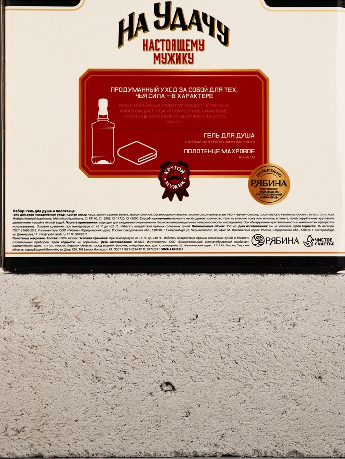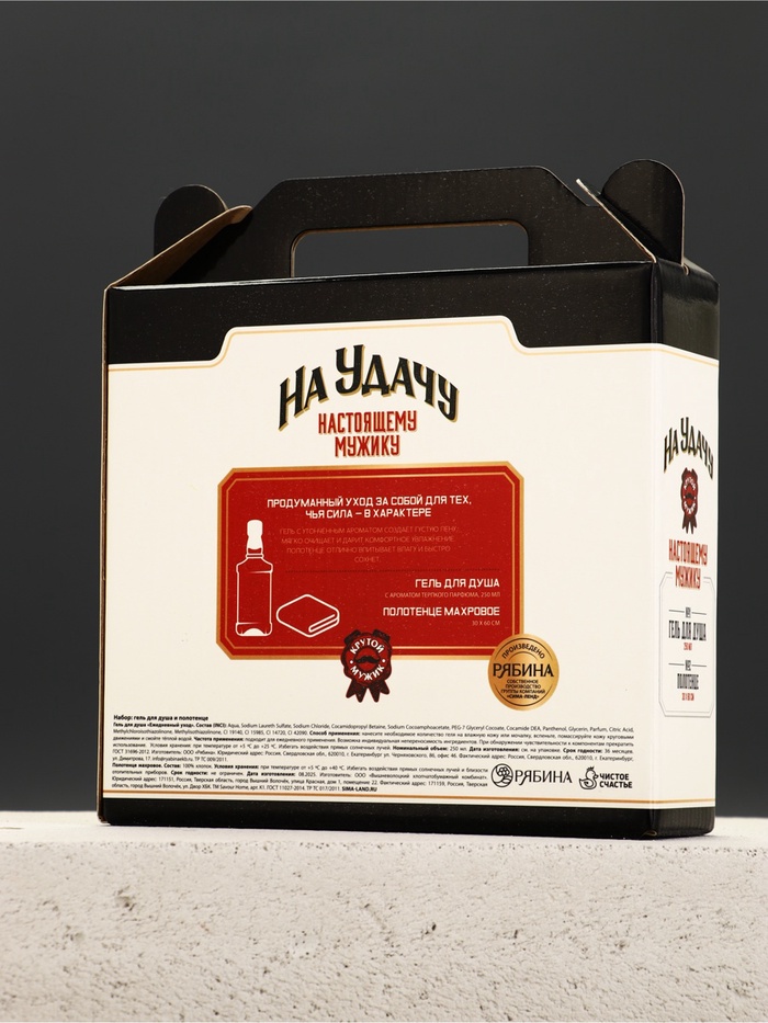 Технические характеристики Подарочный набор «На удачу», гель для душа во флаконе виски 250 мл и полотенце, Чистое счастье