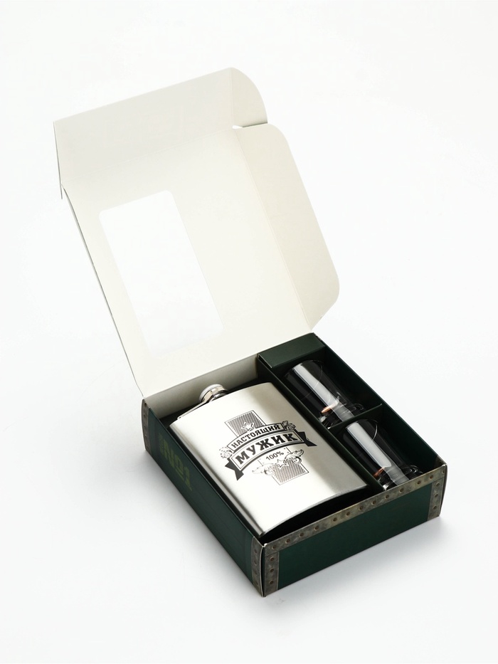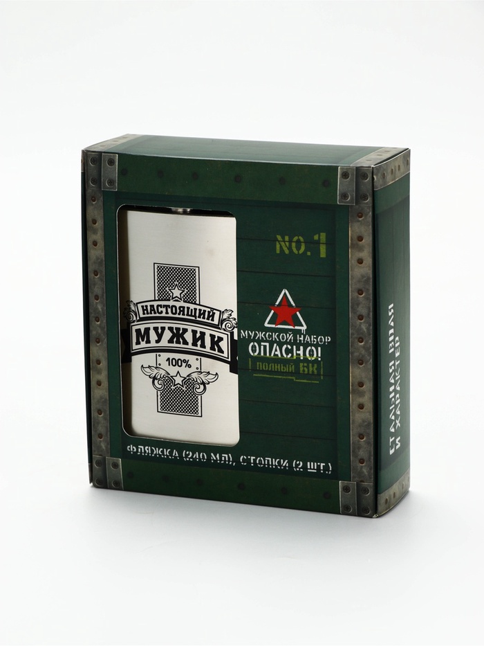 Технические характеристики Подарочный набор «Настоящий мужик», стопки непробиваемые 2 шт.×50 мл, фляжка 240 мл.