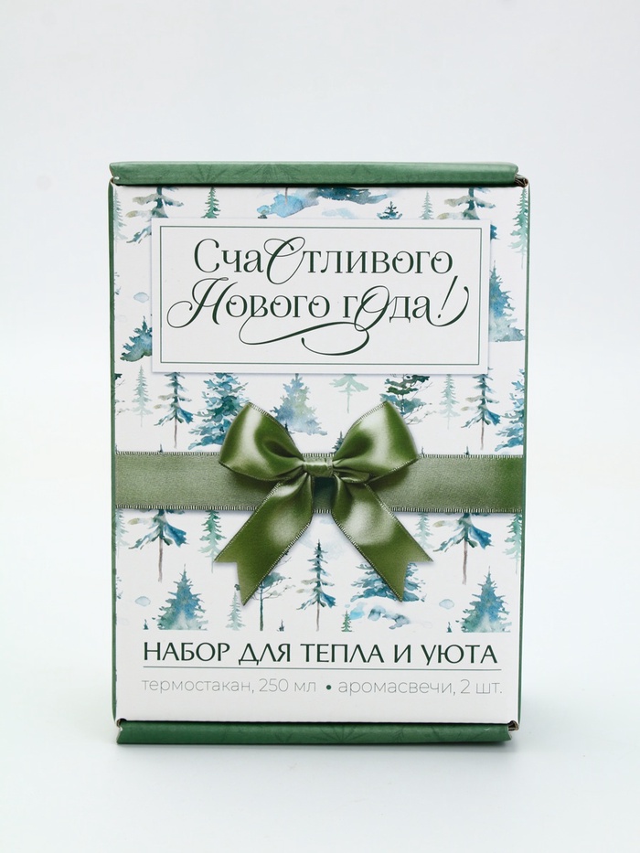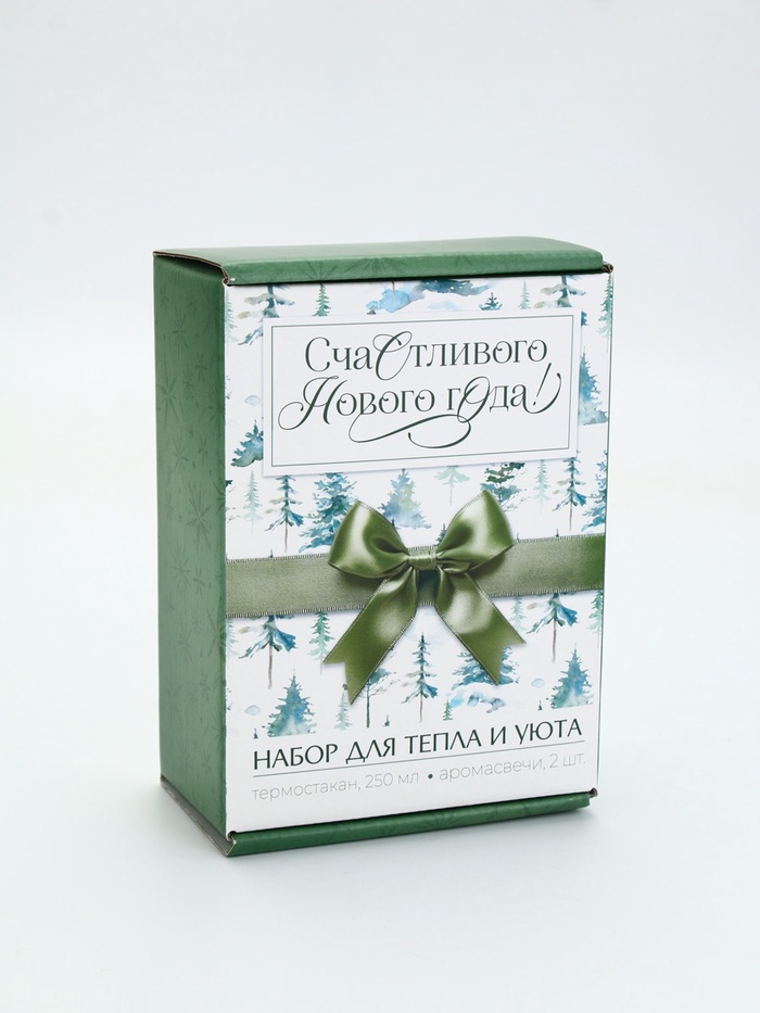 Технические характеристики Подарочный набор «Новогоднего тепла и счастья», термостакан 250 мл., свечи