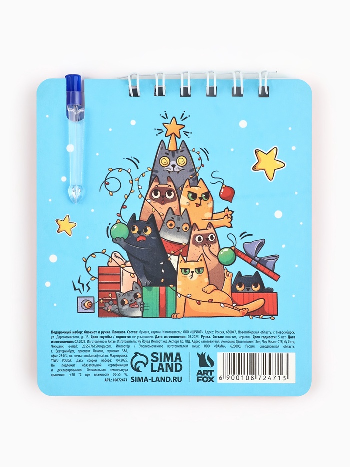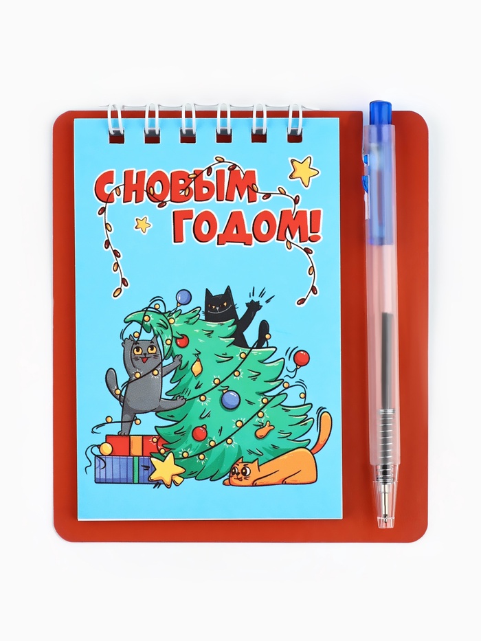 Подарочный набор новогодний, блокнот и мини ручка, 32 л. «Котики»