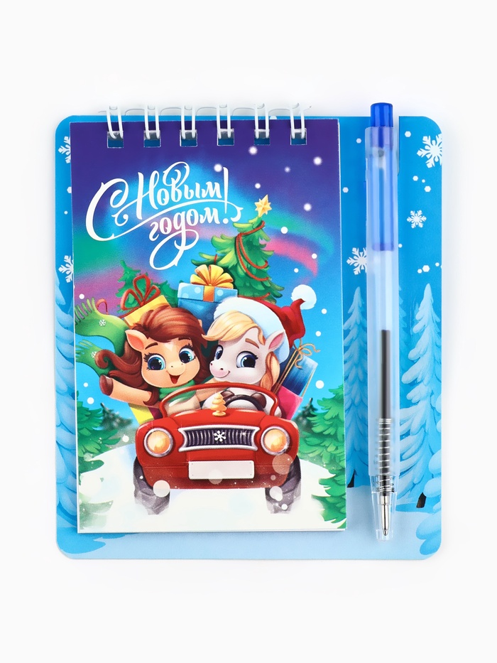 Подарочный набор новогодний, блокнот и мини ручка, 32 л. «Лошадки»