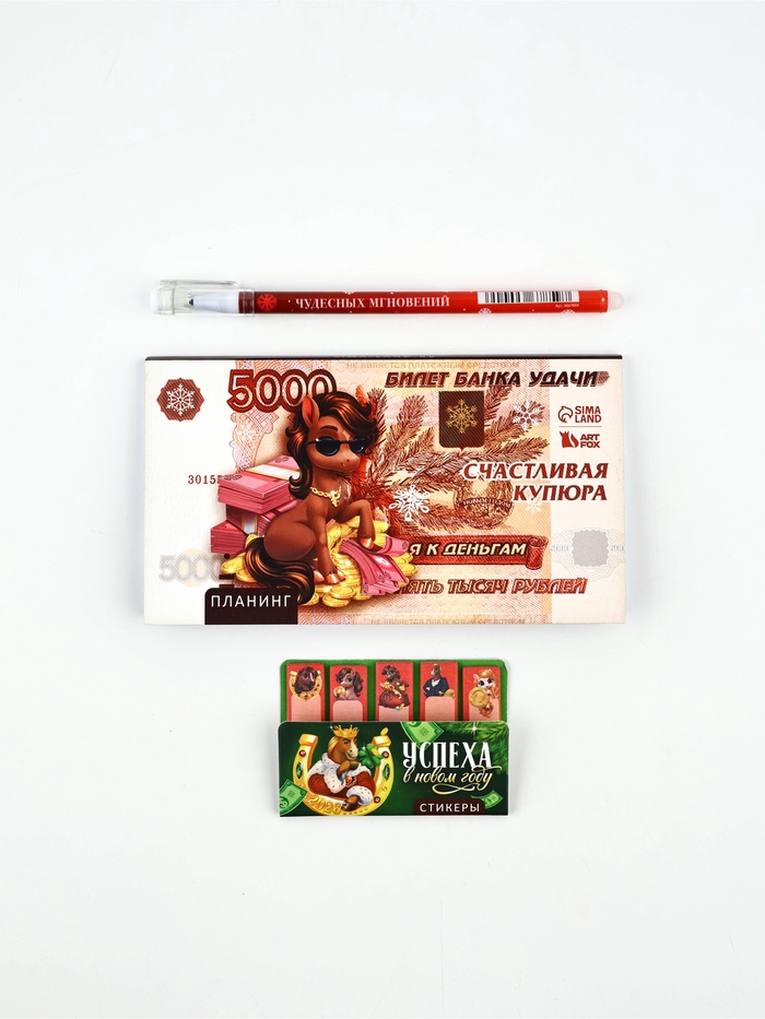 Подарочный набор новогодний, стикеры, планер и ручка «Купюра»