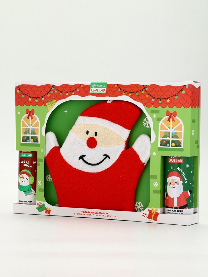 Технические характеристики Подарочный набор новогодний «Дед Мороз», гель для душа 2 шт х 150 мл, мочалка, URAL LAB