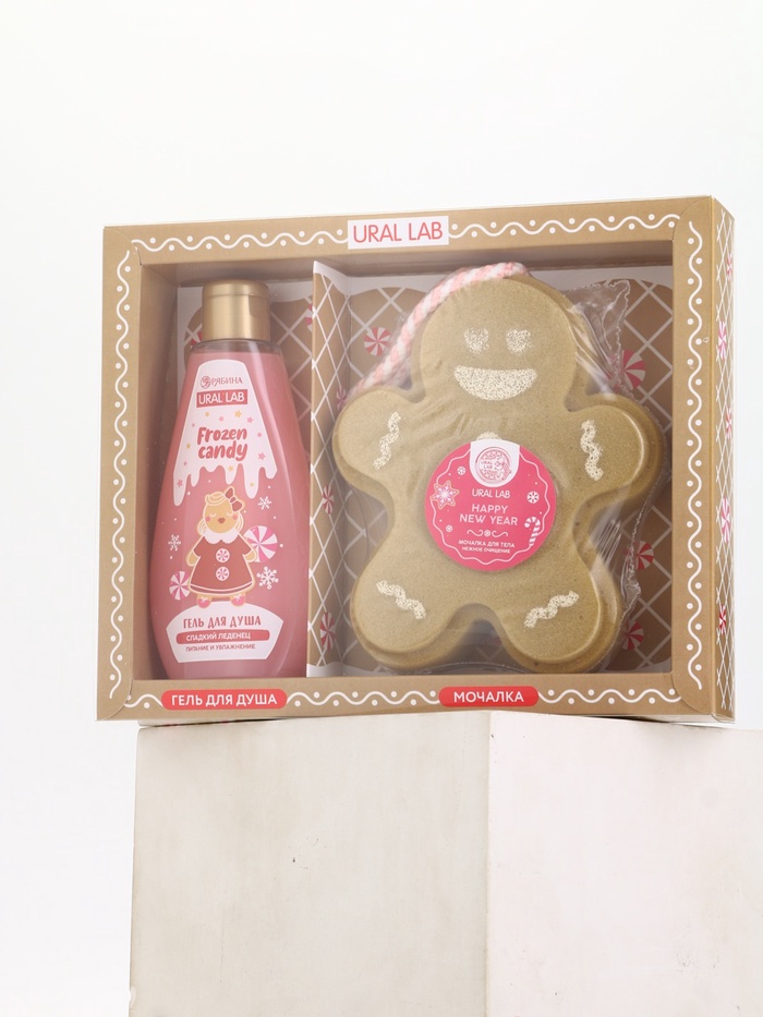 Подарочный набор новогодний: гель для душа и мочалка для тела, аромат сладкий леденец, URAL LAB