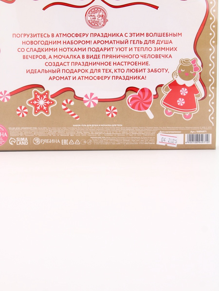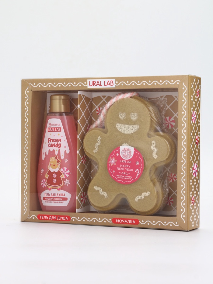 Технические характеристики Подарочный набор новогодний: гель для душа и мочалка для тела, аромат сладкий леденец, URAL LAB