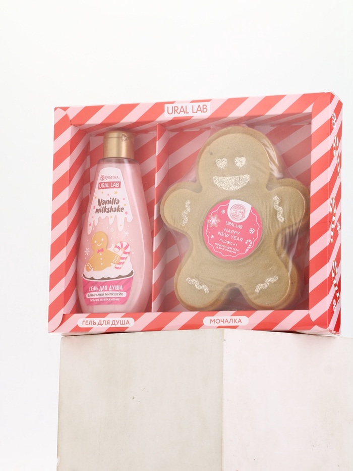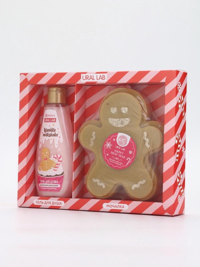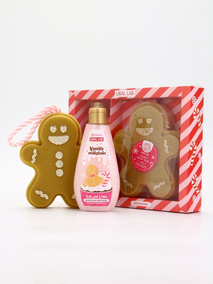 Подарочный набор новогодний: гель для душа и мочалка для тела, аромат ванильный милкшейк, URAL LAB