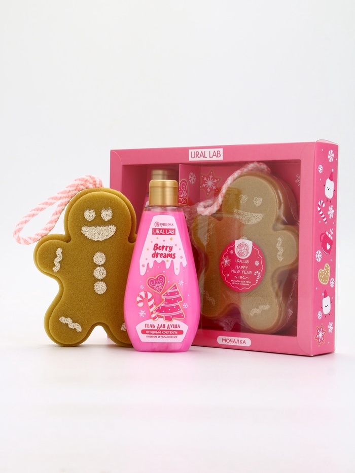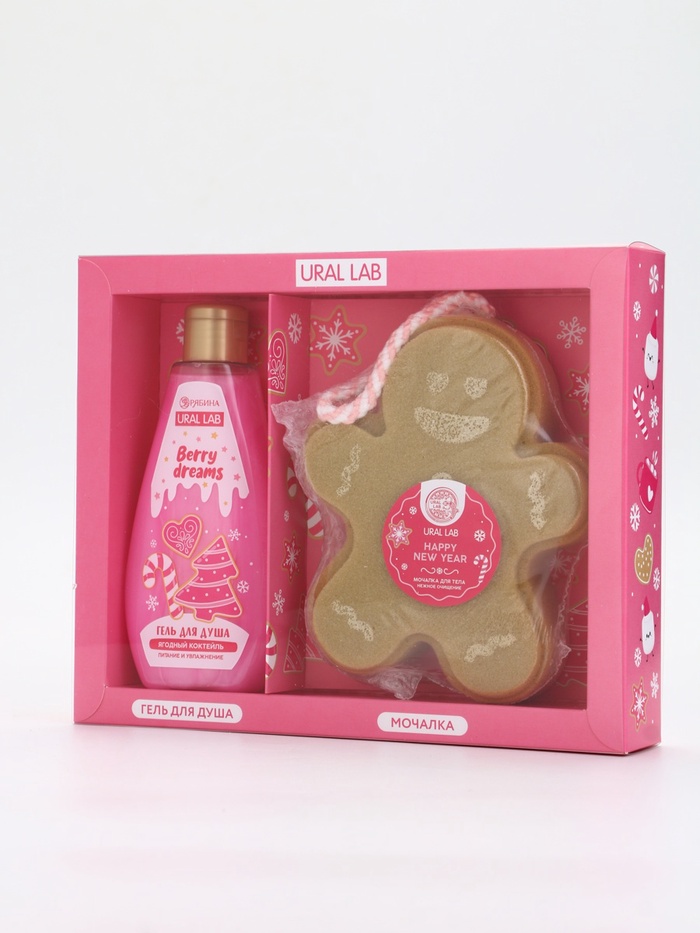 Подарочный набор новогодний: гель для душа и мочалка для тела, аромат ягодный коктейль, URAL LAB