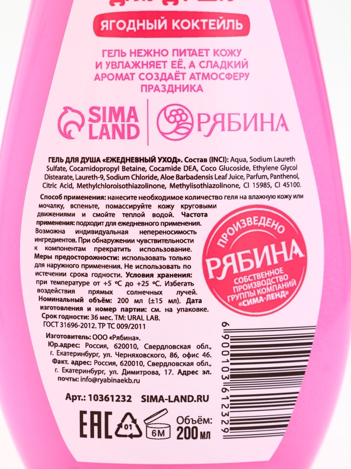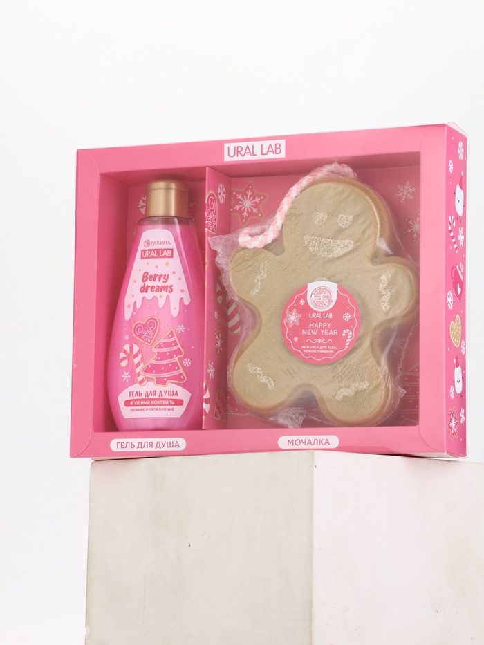 Технические характеристики Подарочный набор новогодний: гель для душа и мочалка для тела, аромат ягодный коктейль, URAL LAB