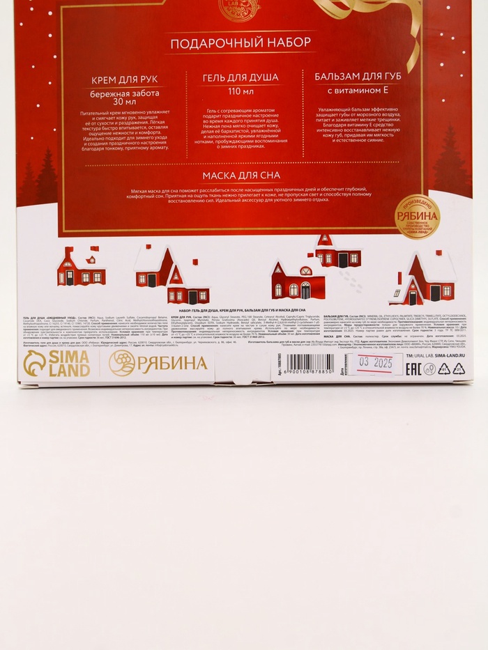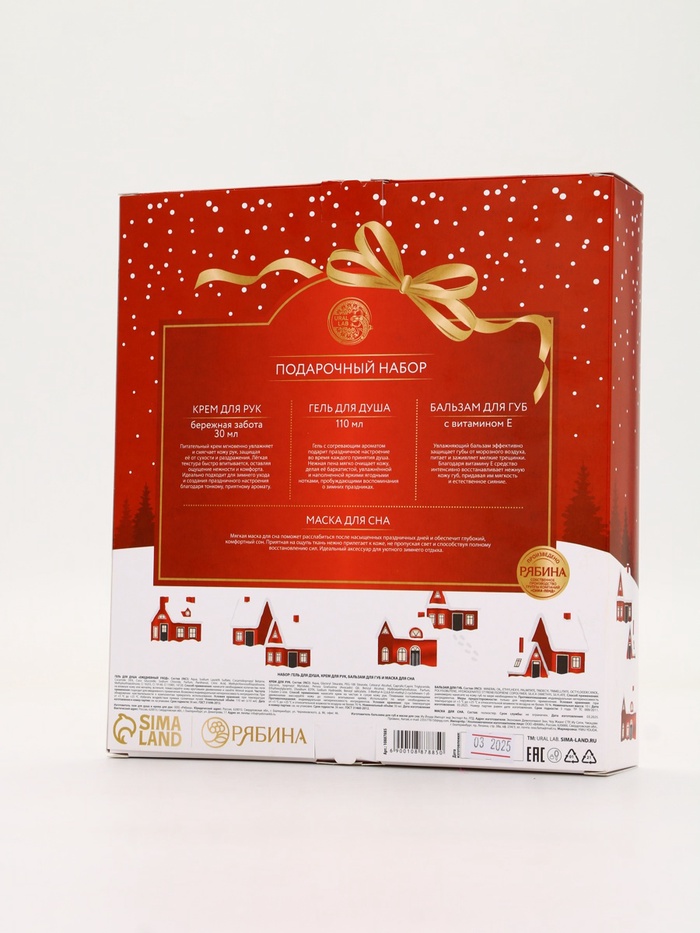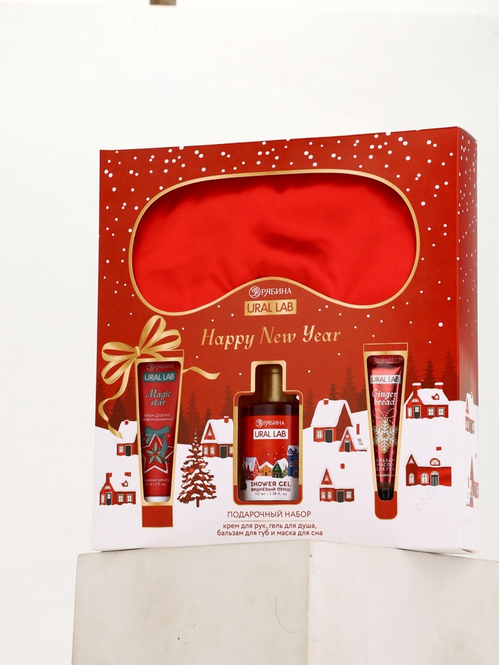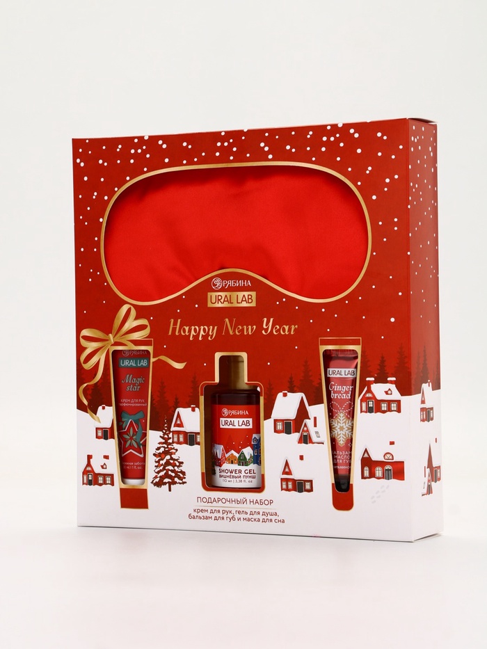 Технические характеристики Подарочный набор новогодний: гель для душа, крем для рук, бальзам для губ, маска для сна, URAL LAB