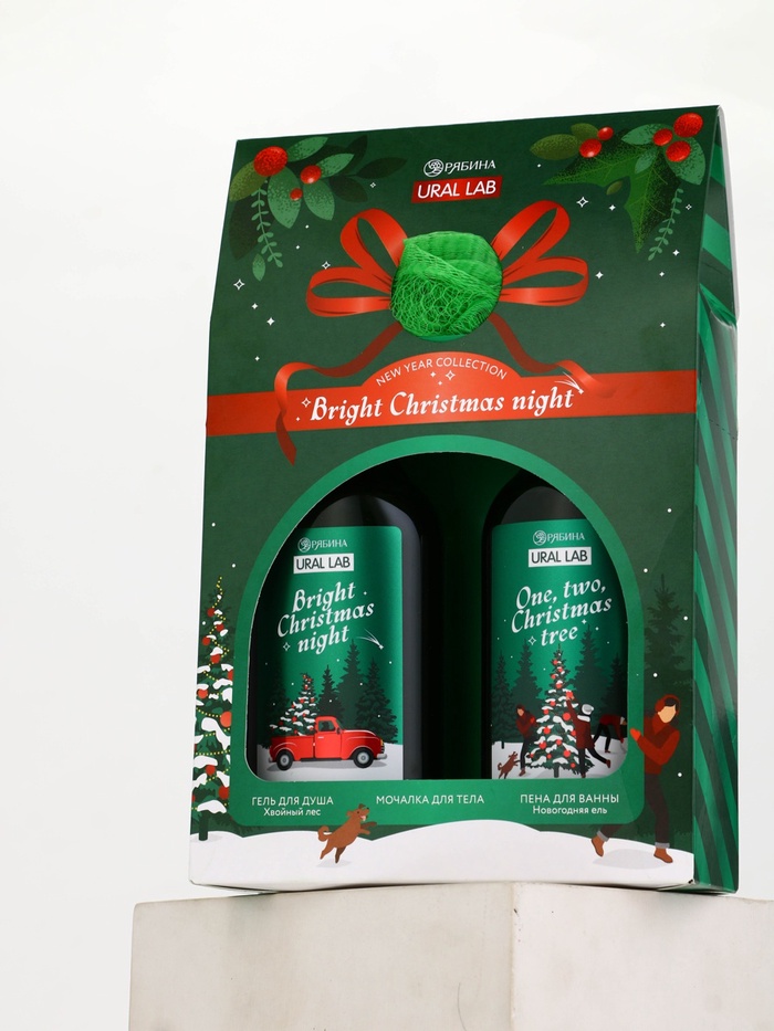 Технические характеристики Подарочный набор новогодний: гель для душа, пена для ванны и мочалка, URAL LAB