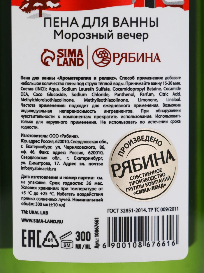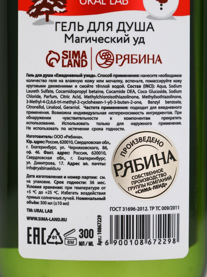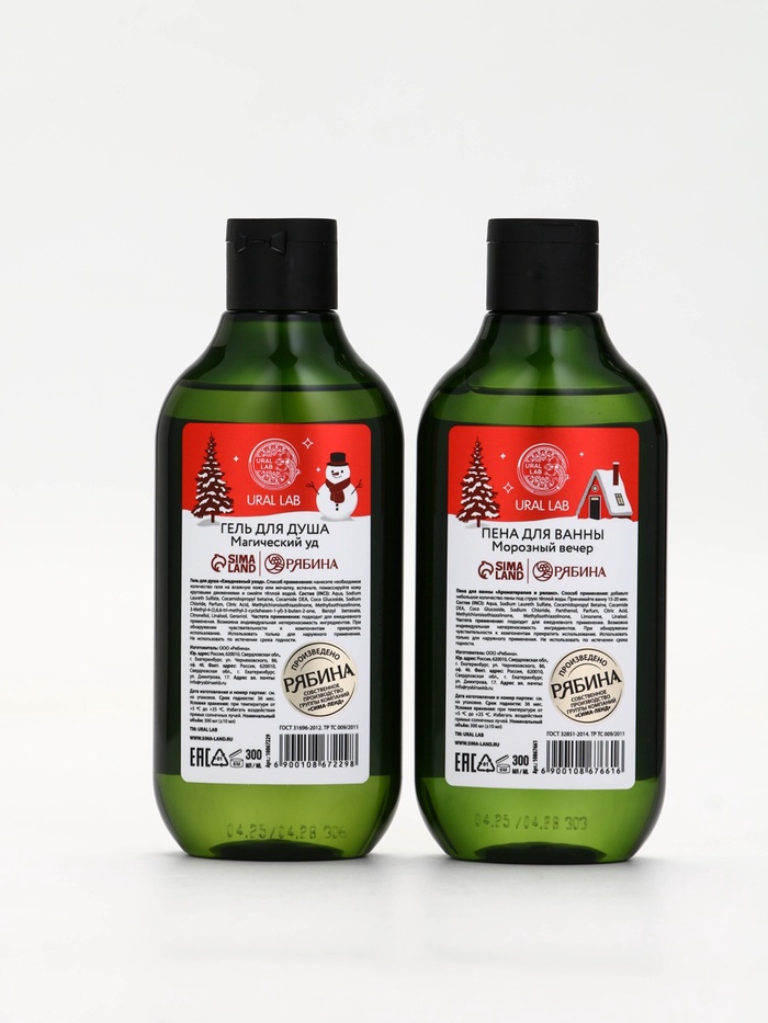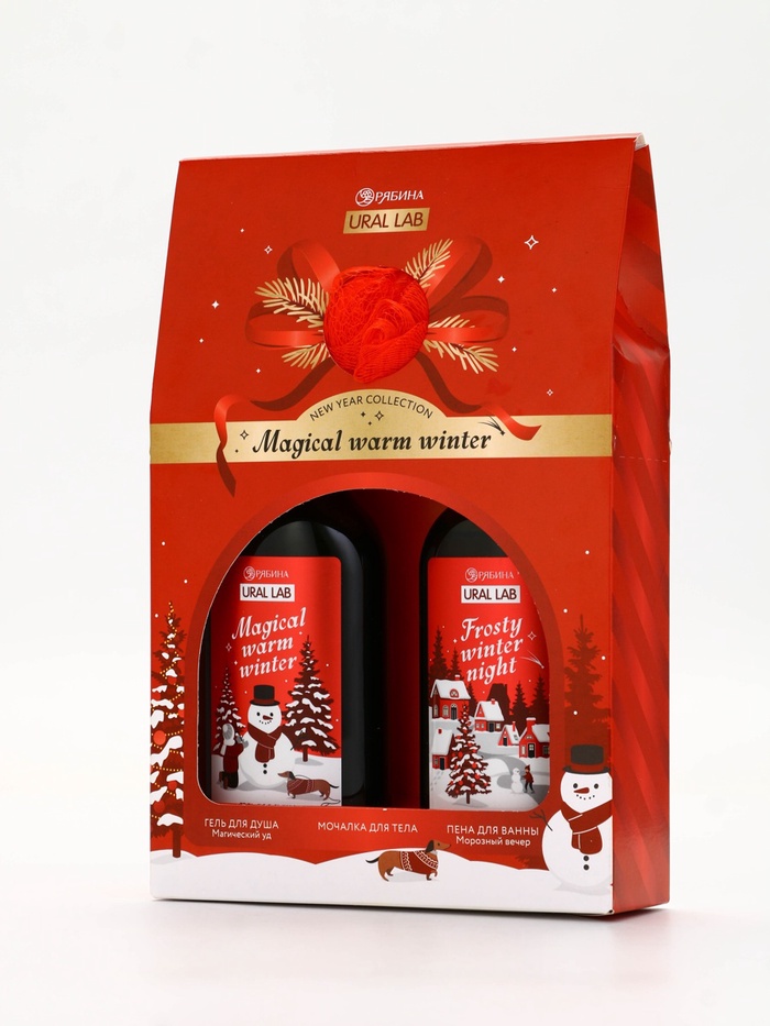 Технические характеристики Подарочный набор новогодний: гель для душа, пена для ванны и мочалка, URAL LAB