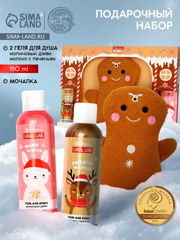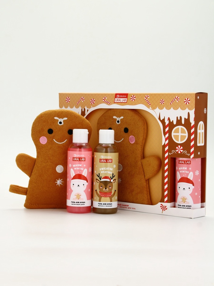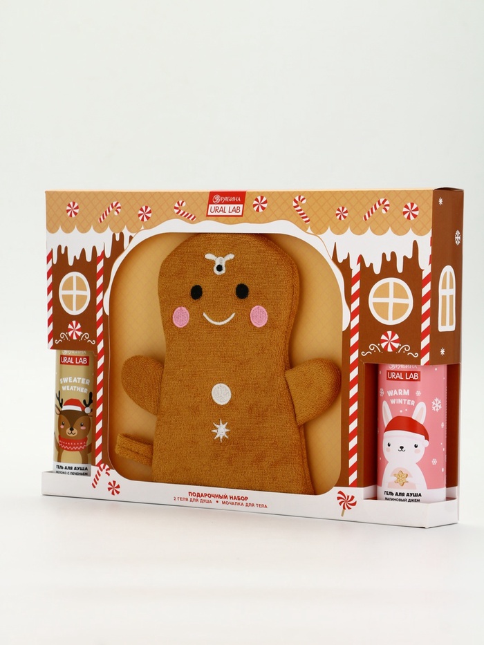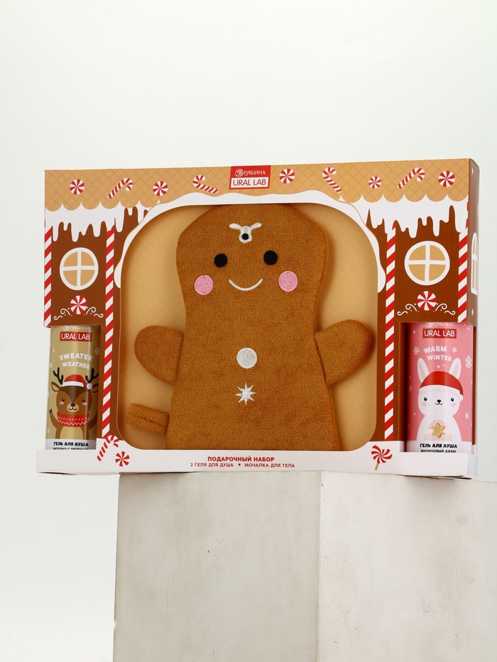 Подарочный набор новогодний «Пряник», гель для душа 2 шт х 150 мл, мочалка, URAL LAB