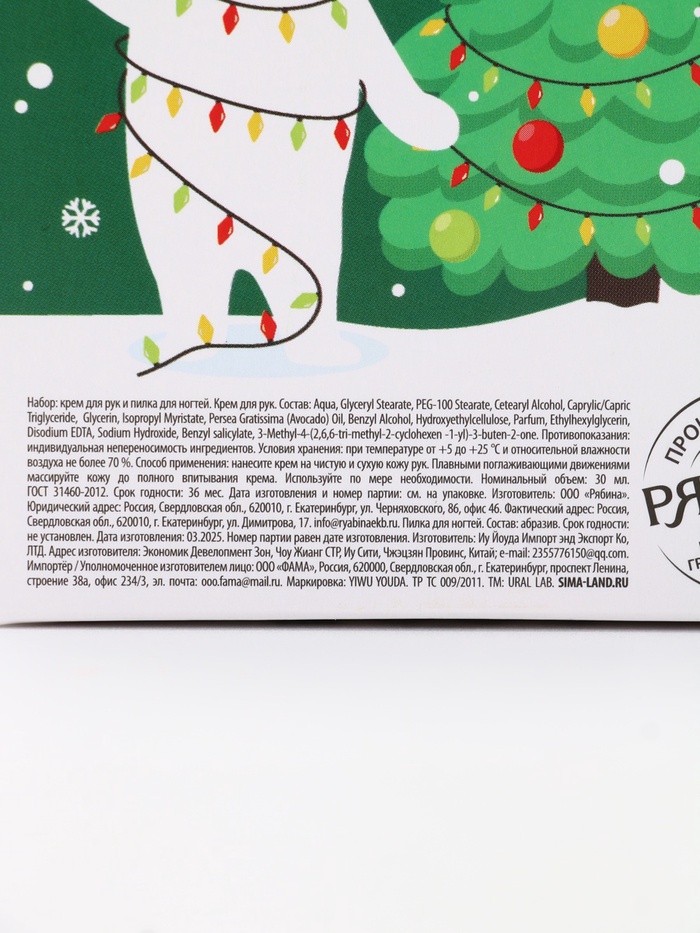 Технические характеристики Подарочный набор новогодний «Счастливого года», крем для рук, 30 мл и пилка для ногтей, URAL LAB