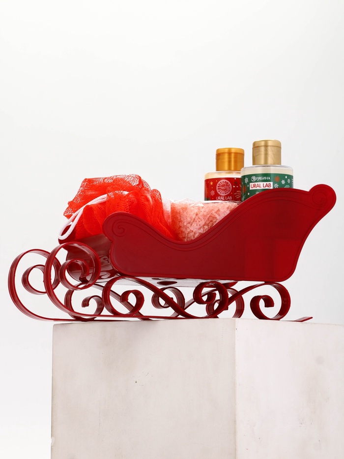 Подарочный набор новогодний в санях: гель для душа 2 шт., соль для ванны и мочалка, URAL LAB