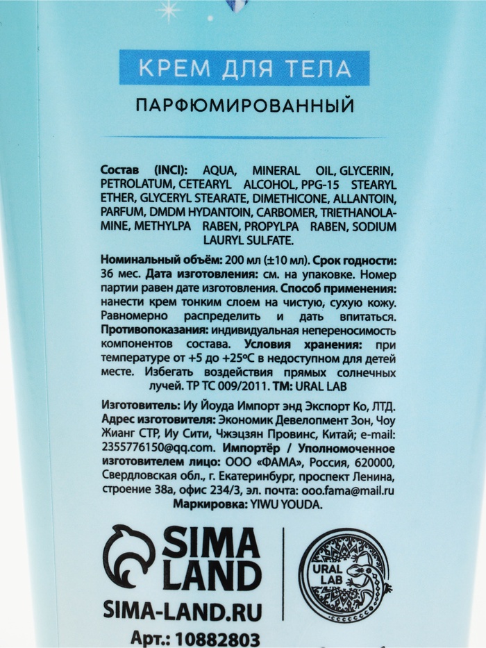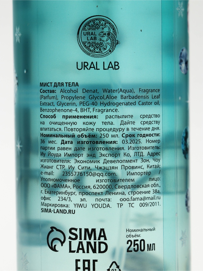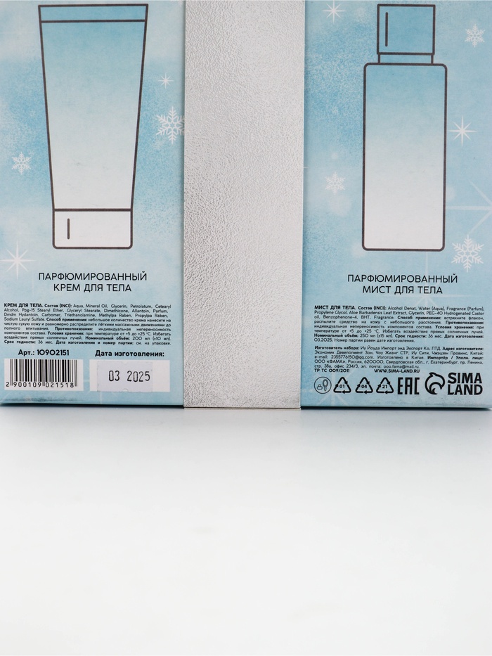 Технические характеристики Подарочный набор: парфюмированный мист и крем для тела, 2×200 мл, URAL LAB