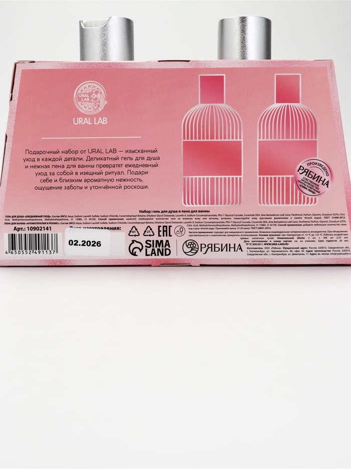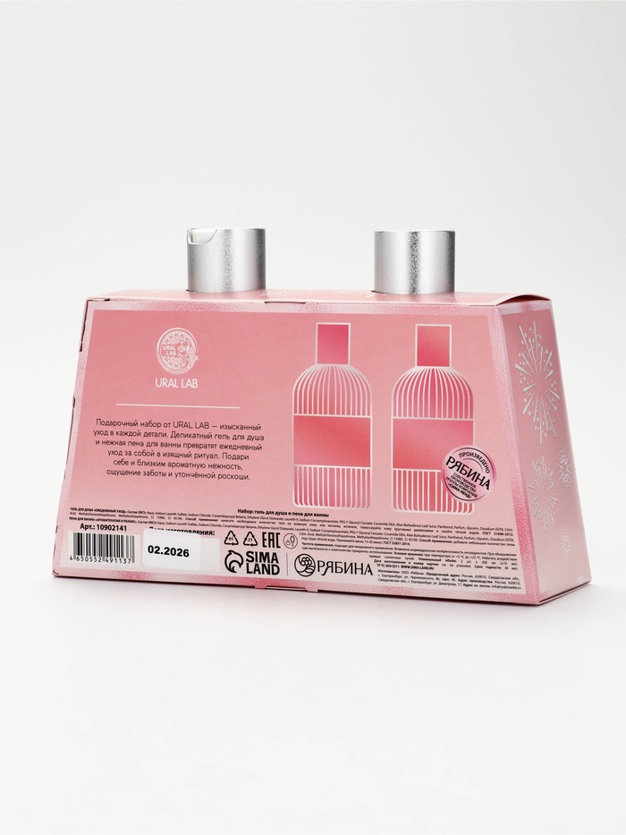 Технические характеристики Подарочный набор: пена для ванны 300 мл, гель для душа 300 мл, URAL LAB