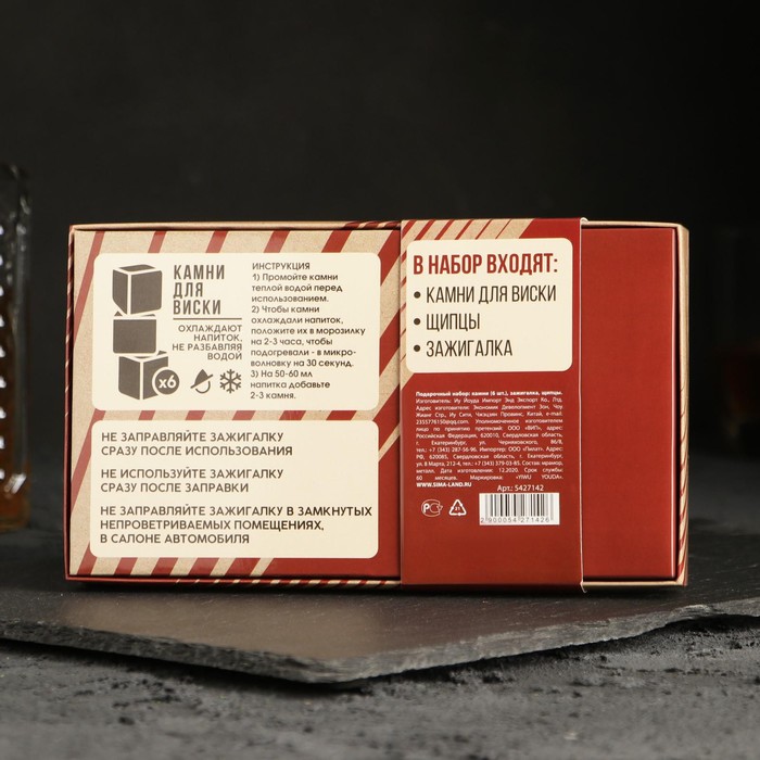 Технические характеристики Подарочный набор «По полной»: камни для виски, зажигалка, щипцы