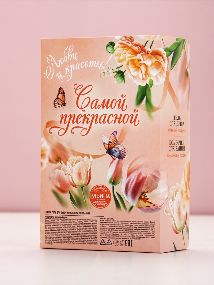 Технические характеристики Подарочный набор «Самой прекрасной», гель для душа мондоро и бомбочки для ванны, Чистое Счастье
