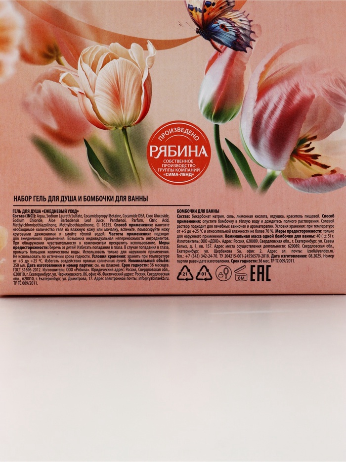| Составляющие набора | Бомбочка для ванн; Гель для душа |