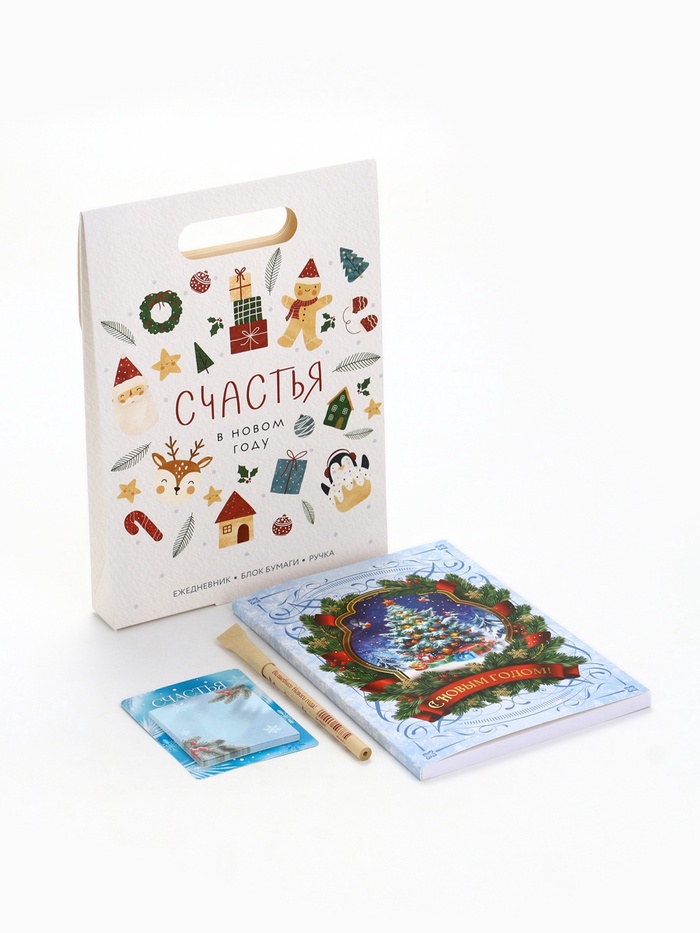 Технические характеристики Подарочный набор «Счастья», ежедневник, блок бумаги и ручка