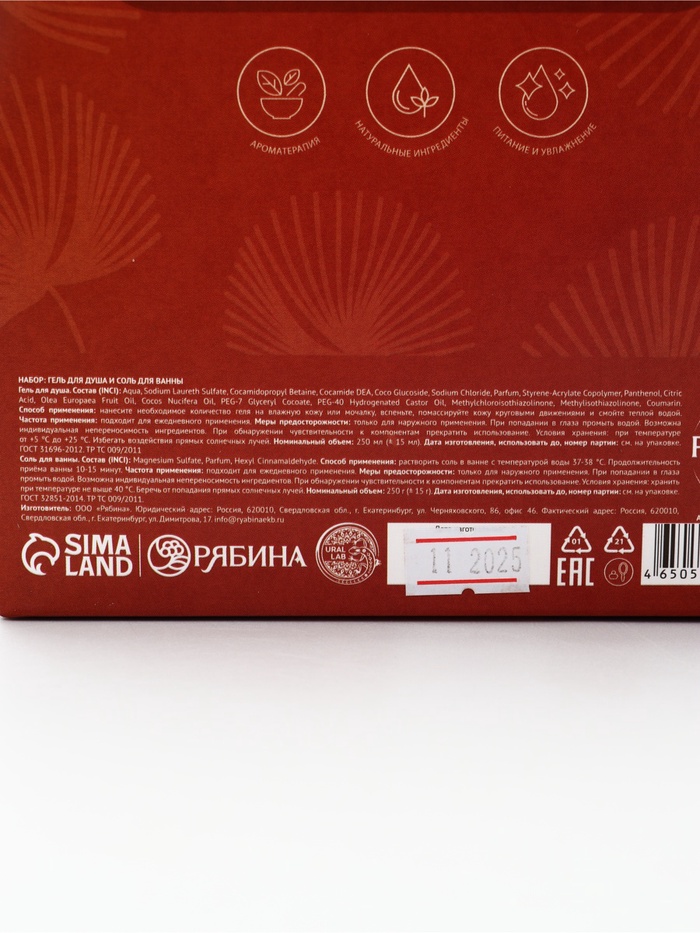 | Составляющие набора | Гель для душа; Соль для ванны |
