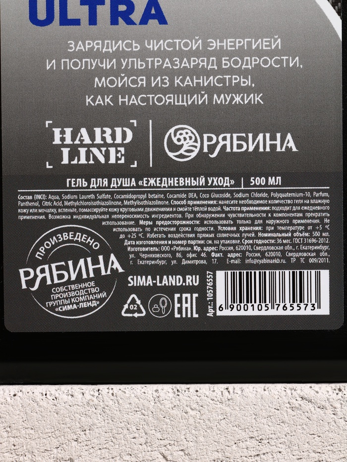Технические характеристики Подарочный набор Super Ultra, гель для душа канистра 500 мл и мочалка лента, HARD LINE