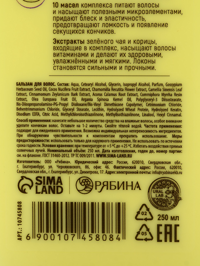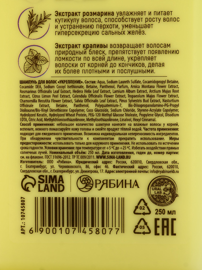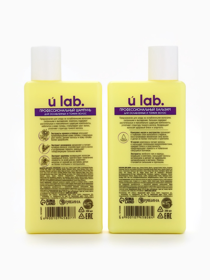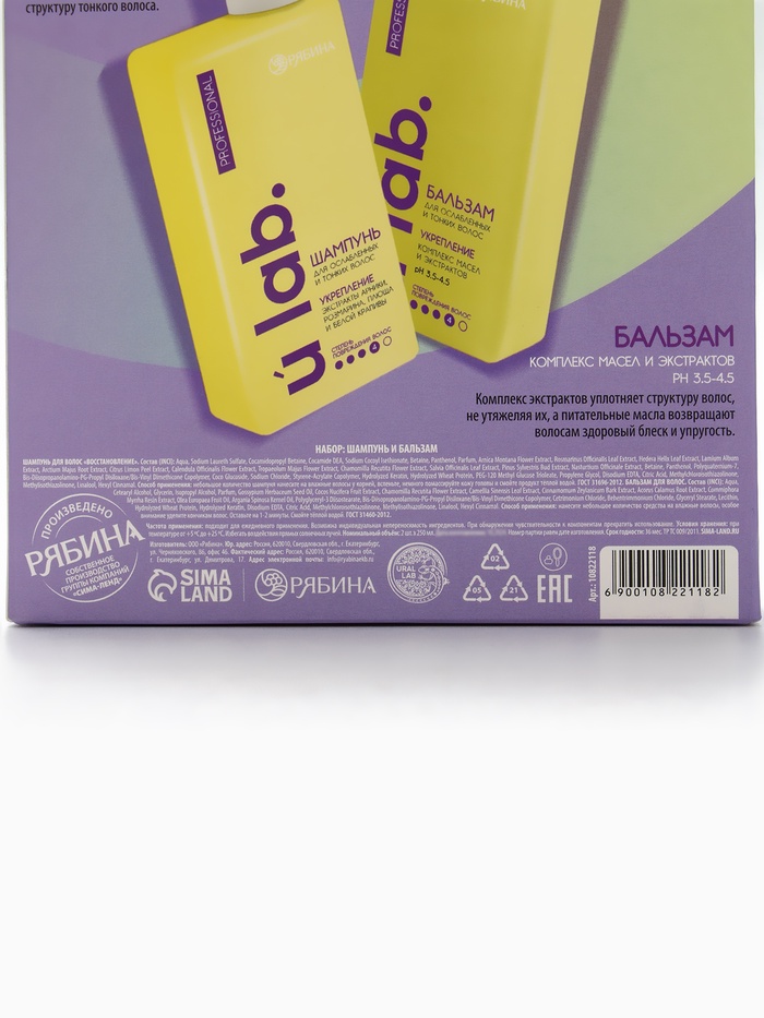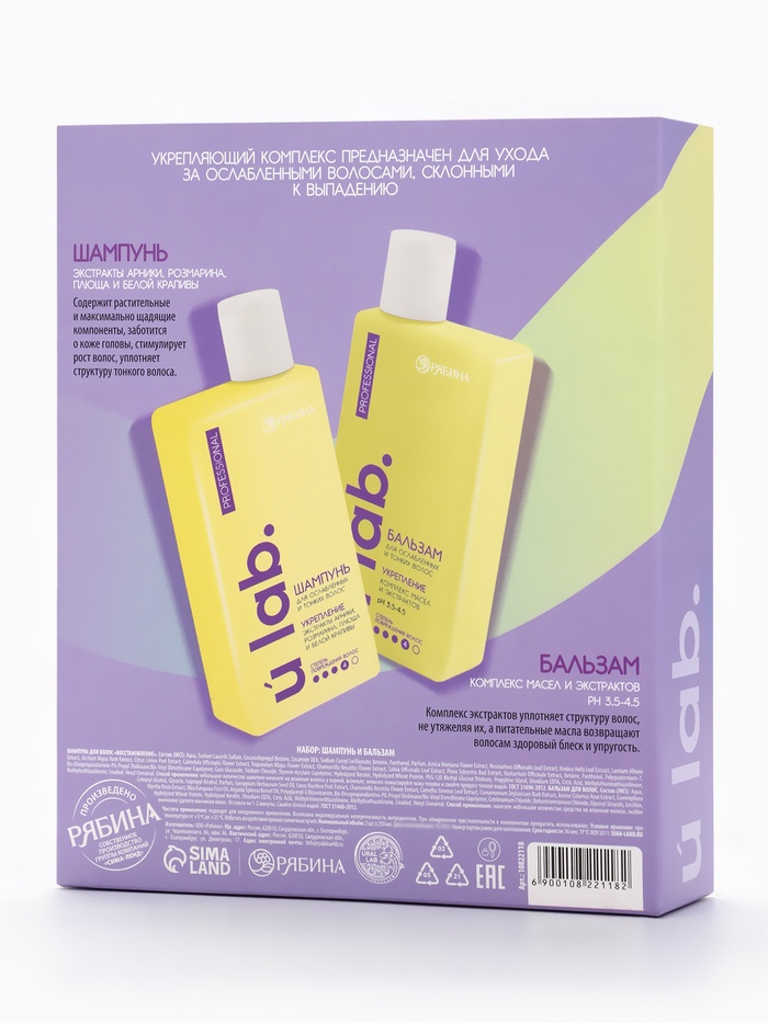 Технические характеристики Подарочный набор «Укрепление»: шампунь 250 мл, бальзам 250 мл, URAL LAB