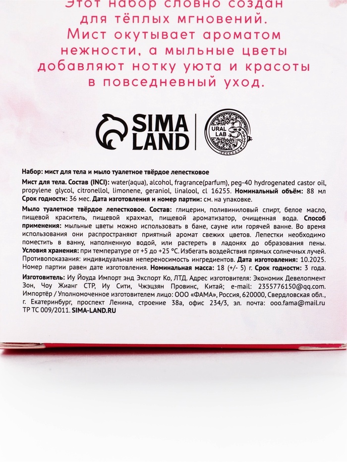 Технические характеристики Подарочный набор: мист для тела 88 мл и мыльные цветы