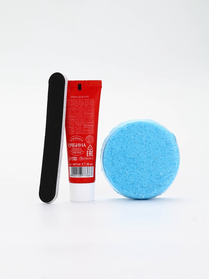 | Составляющие набора | Бомбочка для ванн; Крем для рук; Пилка |