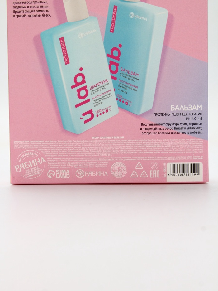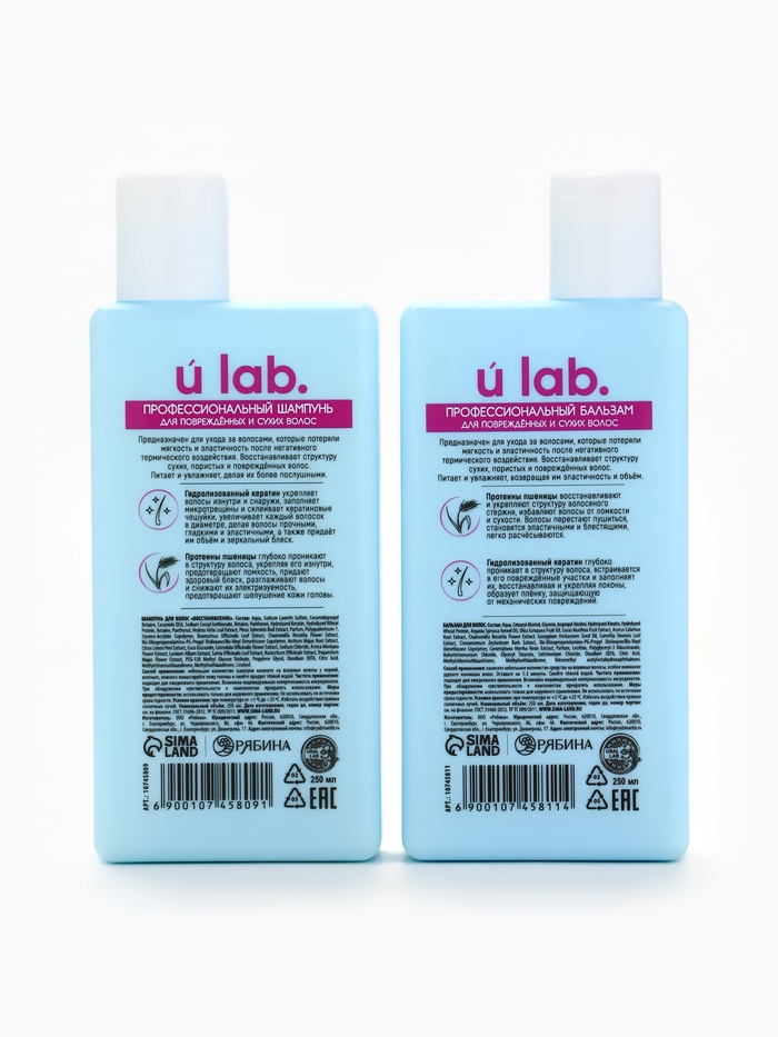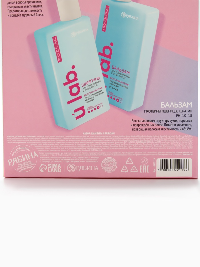 Технические характеристики Подарочный набор «Восстановление»: шампунь 250 мл, бальзам 250 мл, URAL LAB
