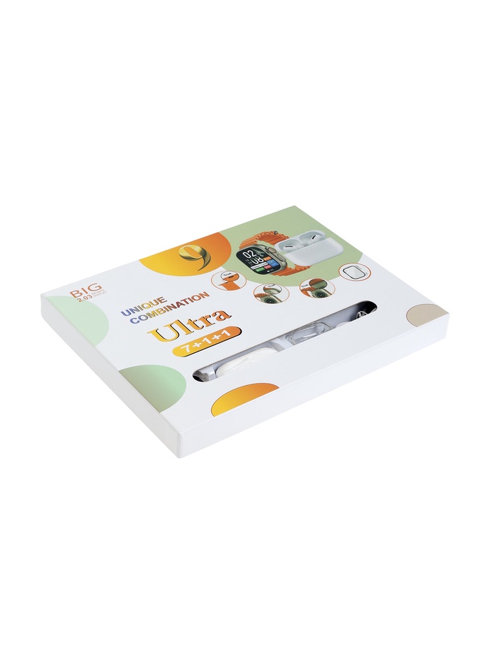 Стиль, технологии и универсальность — всё это объединено в одном подарочном наборе. Современные смарт-часы и беспроводные наушники идеально дополняют друг друга, а семь сменных ремешков позволяют ежедневно менять образ под настроение или стиль одежды. Набор упакован в аккуратную подарочную коробку, готовую к вручению без дополнительной подготовки.