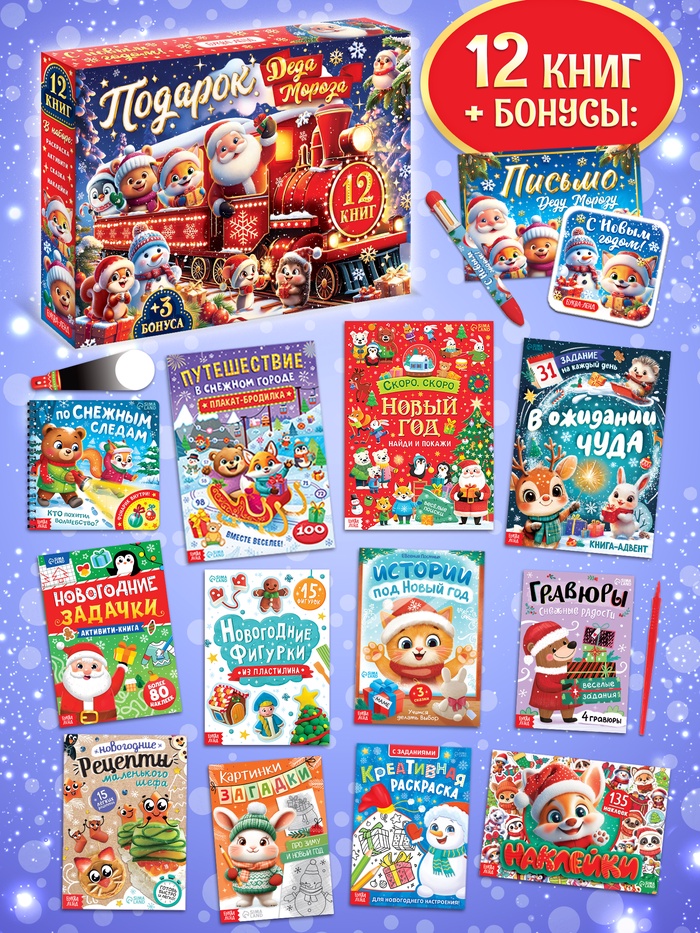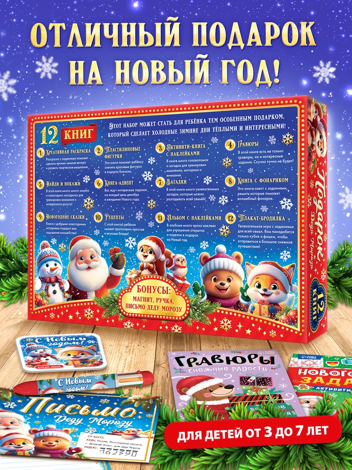 Технические характеристики Подарок на Новый год для детей «Подарок Деда Мороза», большой новогодний подарочный набор книг 12 шт.