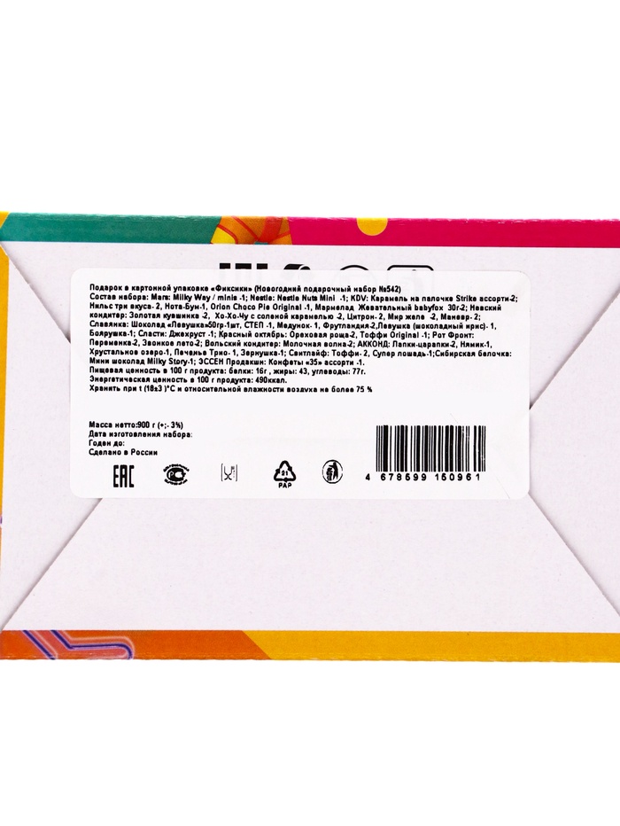 Технические характеристики Подарок в картонной упаковке "Фиксики" 900 г