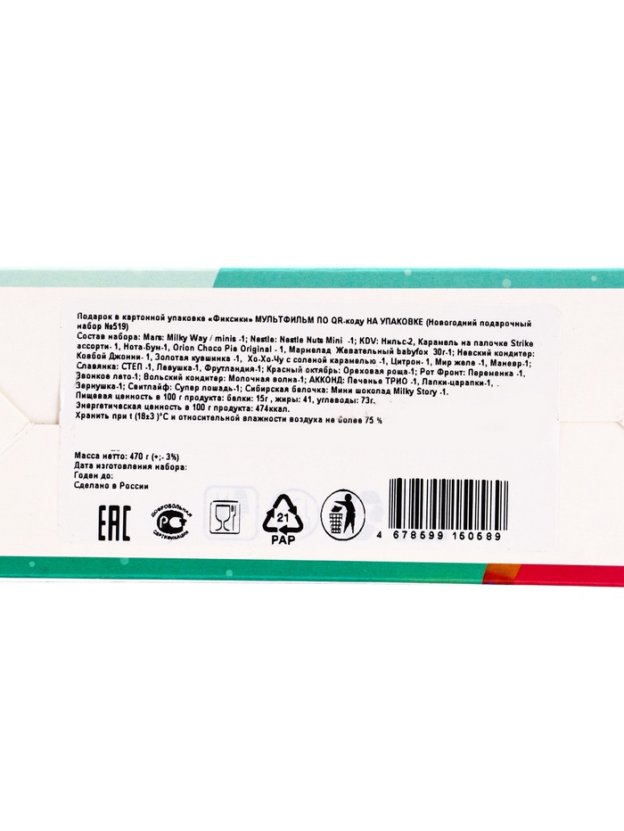 Технические характеристики Подарок в картонной упаковке "Фиксики!" а43, 470 гр
