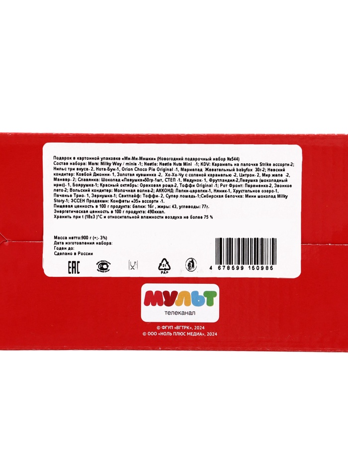 Технические характеристики Подарок в картонной упаковке «Ми-ми-мишки, b34» 900 гр
