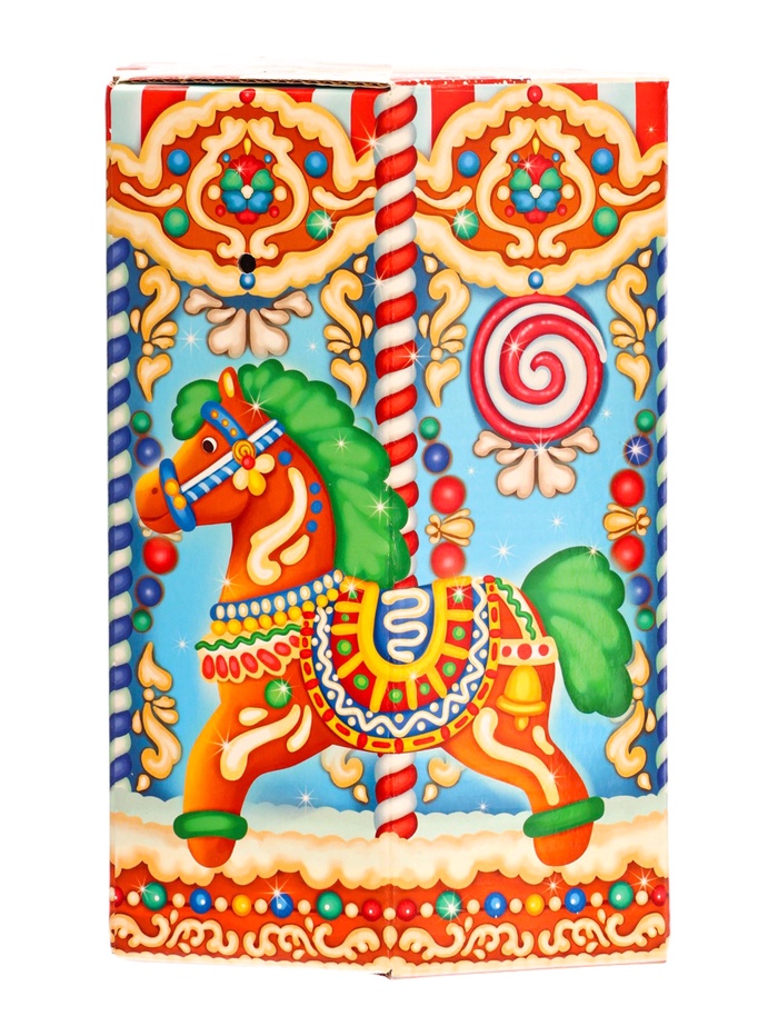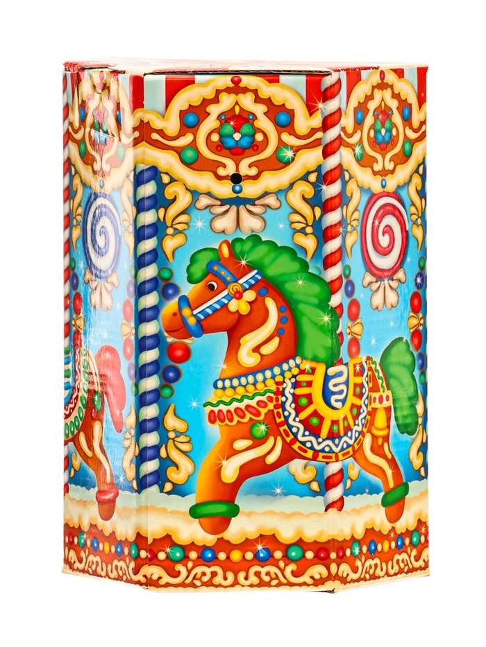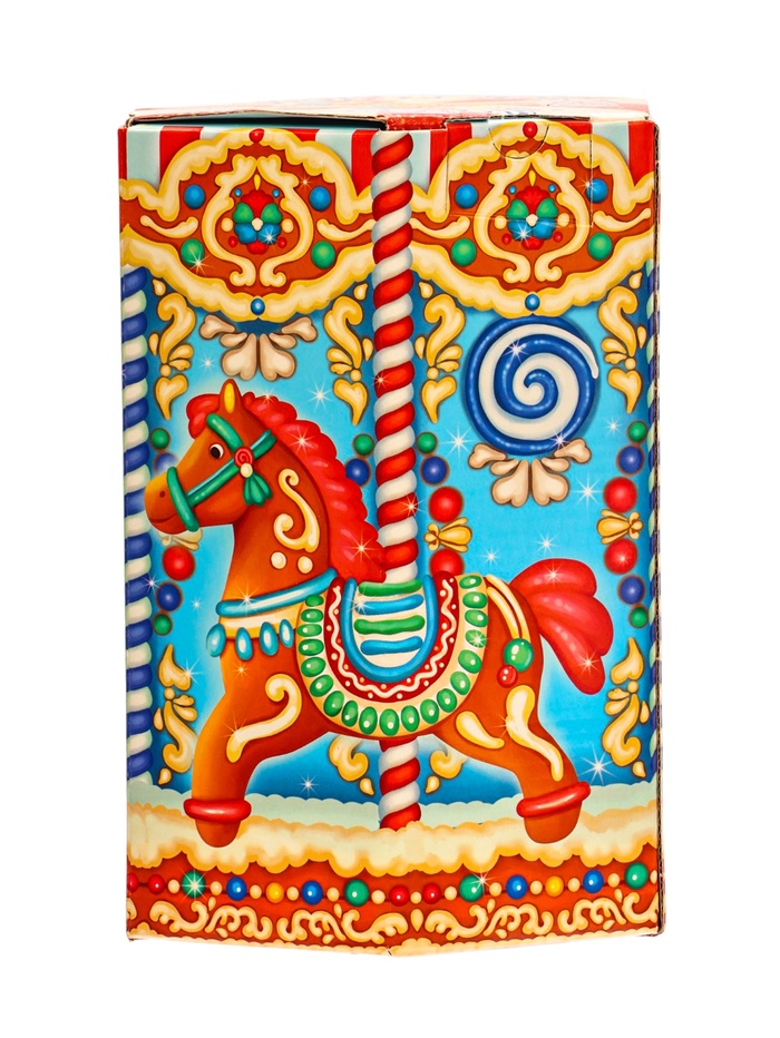 Новогодний подарок «Пряничная карусель» весом 1000 г создаёт атмосферу весёлого карнавала. Картонная коробка с карусельным дизайном передаёт ощущение движения и праздничного веселья.