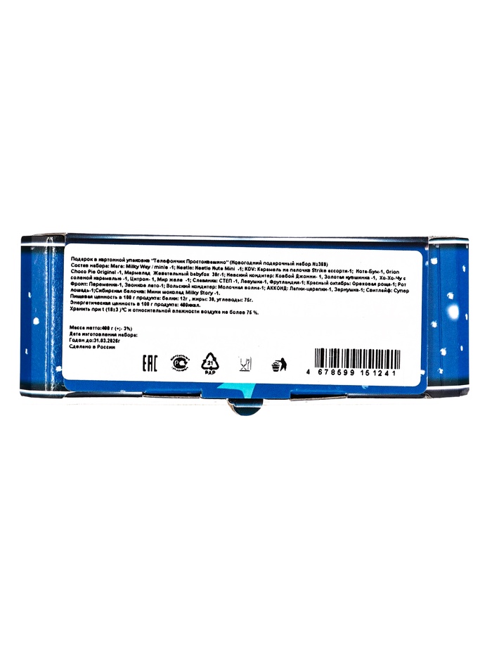 Технические характеристики Подарок в картонной упаковке «Телефончик» Простоквашино 400 гр