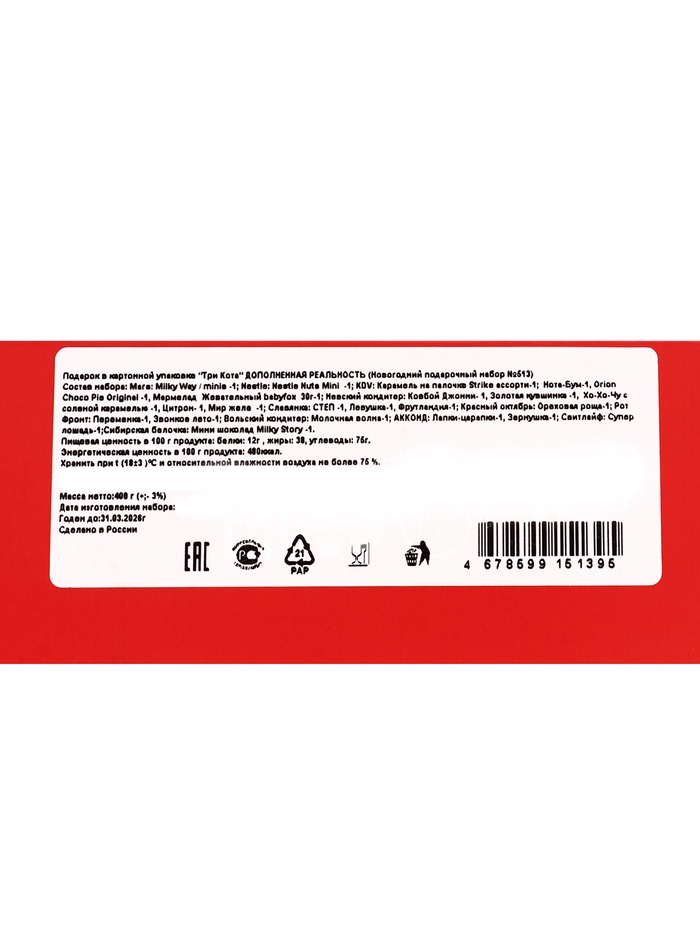 Технические характеристики Подарок в картонной упаковке "Три кота!" 400 гр