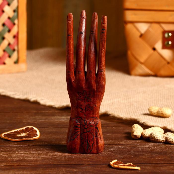 Технические характеристики Подставка для колец дерево "Рука роспись" 20 см