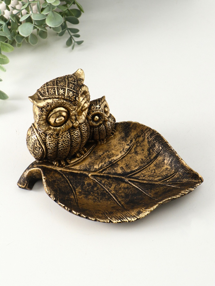 Подставка для мелочей «Совушки», полистоун, 15×22×12 см, под золото