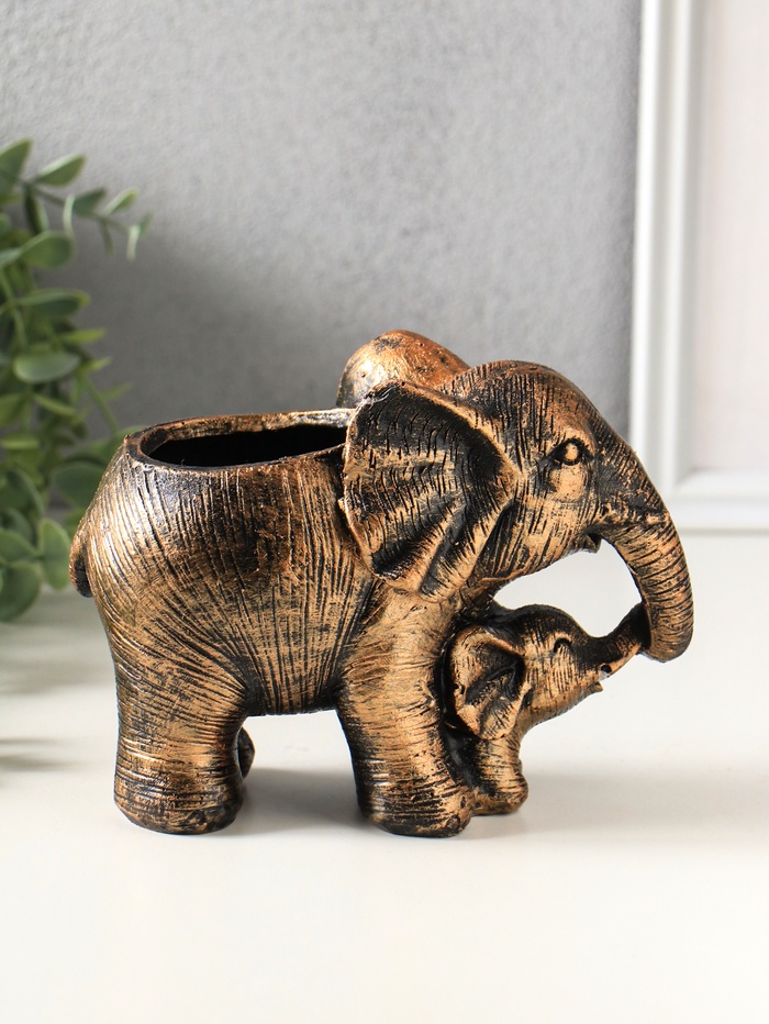 Подставка для мелочей «Слон со слонёнком», 16×12×8 см, под бронзау