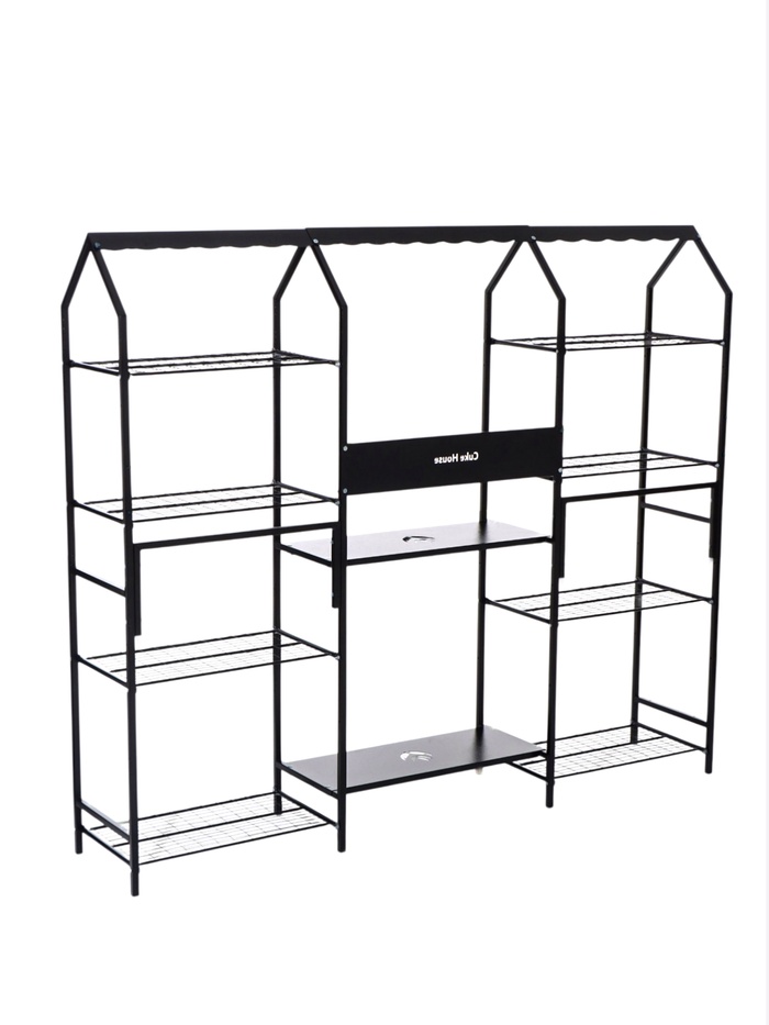 Подставка для цветов, 208×40×177 см, 8 полок, 3 секции, чёрная