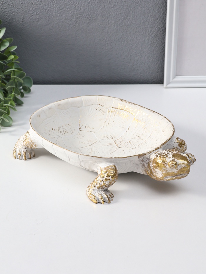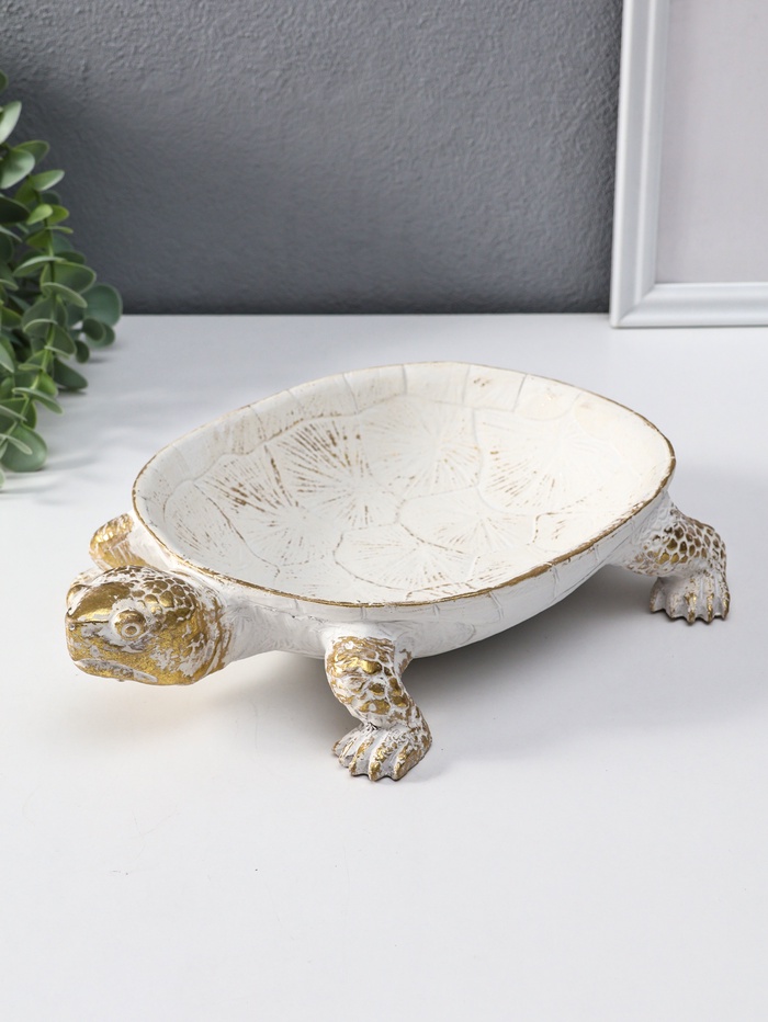 Фигура - подставка для мелочей «Черепаха», белая с золотом, полистоун, 28×19×5 см