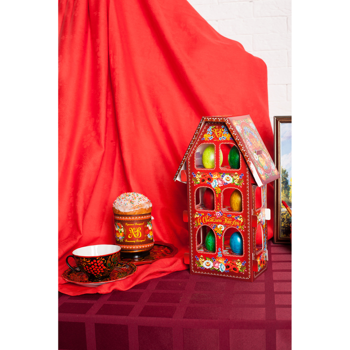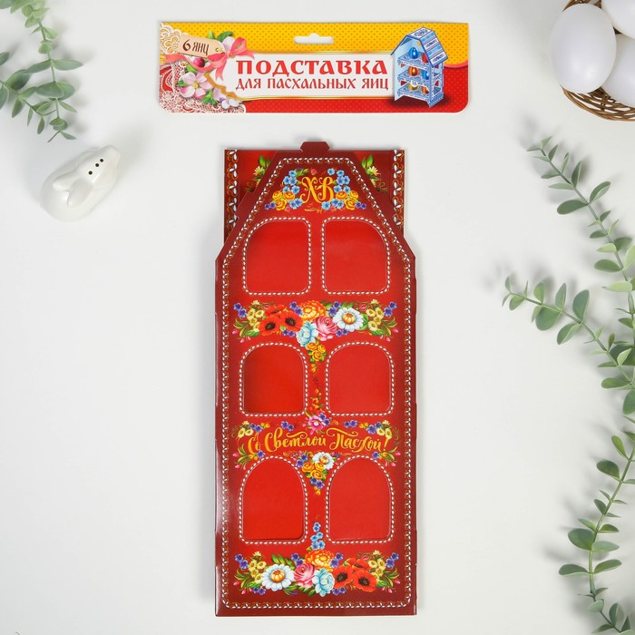 Подставка на 6 яиц «Домик» (жостово), 20×33 см