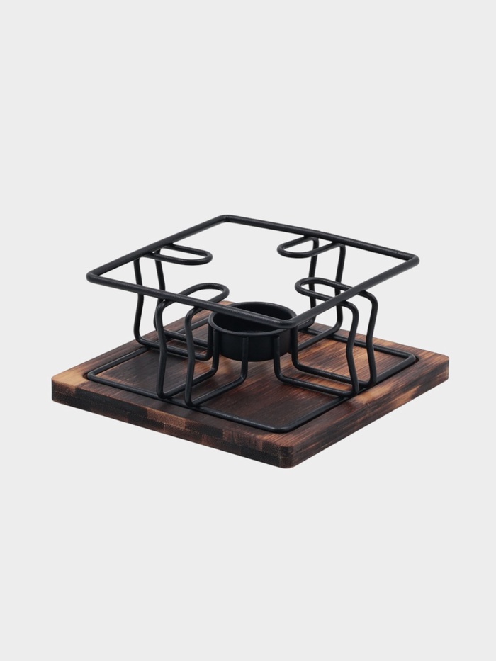 - Компактные габариты — 15×15×7,5 см: подставка устойчива, но при этом не занимает много места на столе. Высота продумана так, чтобы пламя не касалось дна посуды напрямую, но сохраняло напиток горячим.