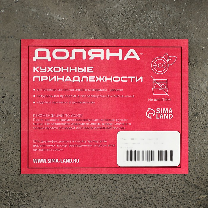 | Примечание | Изделие нельзя мыть в посудомоечной машине Изготовлено из натуральных материалов. Поверхность может иметь шероховатость и сучки, которая никак не сказывается на функциональном состоянии. Размер товара может отличаться от заявленного на ± 1 см. |